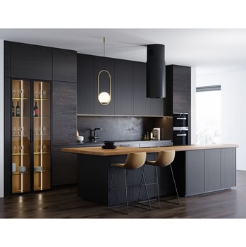 Meubles de luxe modulaires en bois de noyer plaqué, couleur noire mate, porte en verre, armoires de cuisine, Design moderne