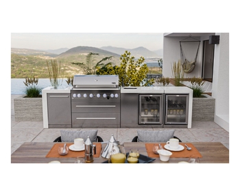 2025 Dorene di lusso moderno e modulare prefabbricato costruito con barbecue portatile da esterno Set di mobili da cucina con Grill e frigo sotto pergolato